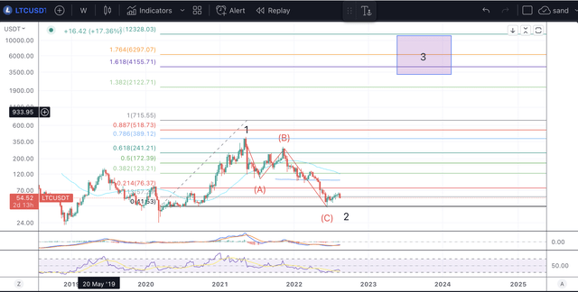Dựa trên cấu trúc biểu đồ LTC hiện tại, có thể thấy rằng giá LTC đã chạm đáy dài hạn. Động thái tăng tiếp theo có thể hướng tới mục tiêu 155 USD.