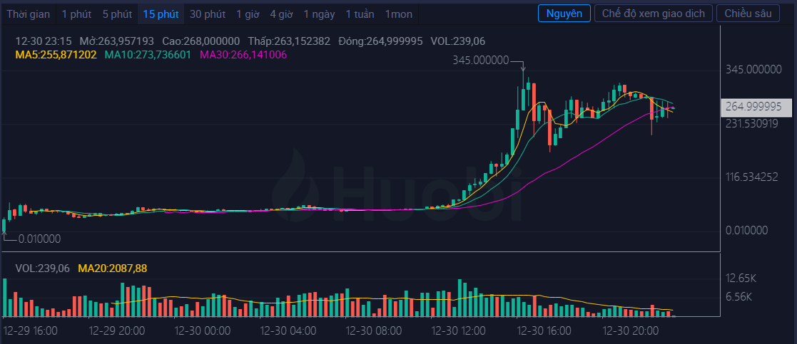 “Sáng ngày 29/12/2022, Pi Network chính là dự án sáng nhất thị trường khi có thông tin đã được list trên 2 sàn giao dịch là Huobi và Xt.com. Sau đó, nhiều sàn giao dịch khác cũng công bố họ list cặp giao dịch PI/USDT. Giá Pi cũng cũng đã ghi nhận sự tăng trưởng liên tục trong ngày, có lúc đạt đỉnh là 345 USDT. Tại thời điểm viết bài, giá PI ở trên sàn Huobi là ~ 263 UST.